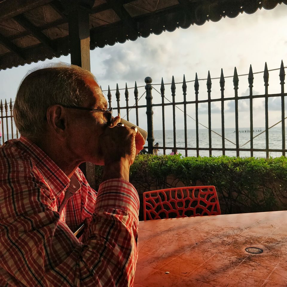 Interestingly enough, a while later though, he started explaining to me on the coffee table that the lady at the counter was preparing the coffee from fresh coffee beans, manually crushed, and that exotism must have amounted to a high price (most places in India use instant coffee powder) . I replied, “Papa, I think it is a mix of what you said and it is a beachside so rates must be high”.